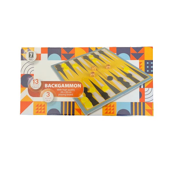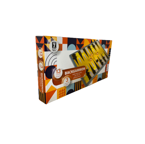 Backgammon is a two-player game of contrary movement in which each player has fifteen pieces known traditionally as men (short for 'tablemen'), but increasingly known as 'checkers' in the US in recent decades, analogous to the other board game of Checkers. The backgammon table pieces move along twenty-four 'points' according to the roll of two dice. The objective of the game is to move the fifteen pieces around the board and be first to bear off, i.e., remove them from the board. The achievement of this while the opponent is still a long way behind results in a triple win known as a backgammon, hence the name of the game. Backgammon involves a combination of strategy and luck (from rolling dice). While the dice may determine the outcome of a single game, the better player will accumulate the better record over a series of many games. With each roll of the dice, players must choose from numerous options for moving their pieces and anticipate possible counter-moves by the opponent. The optional use of a doubling cube allows players to raise the stakes during the game. Instructions included What's in the box |