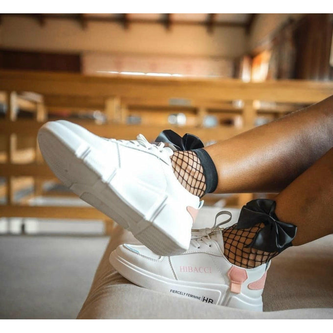 Black Mesh Short Ankle Bow Fishnet Socks These socks feature a unique bow design and black mesh fabric, making them a fashionable and comfortable choice for everyday wear. |