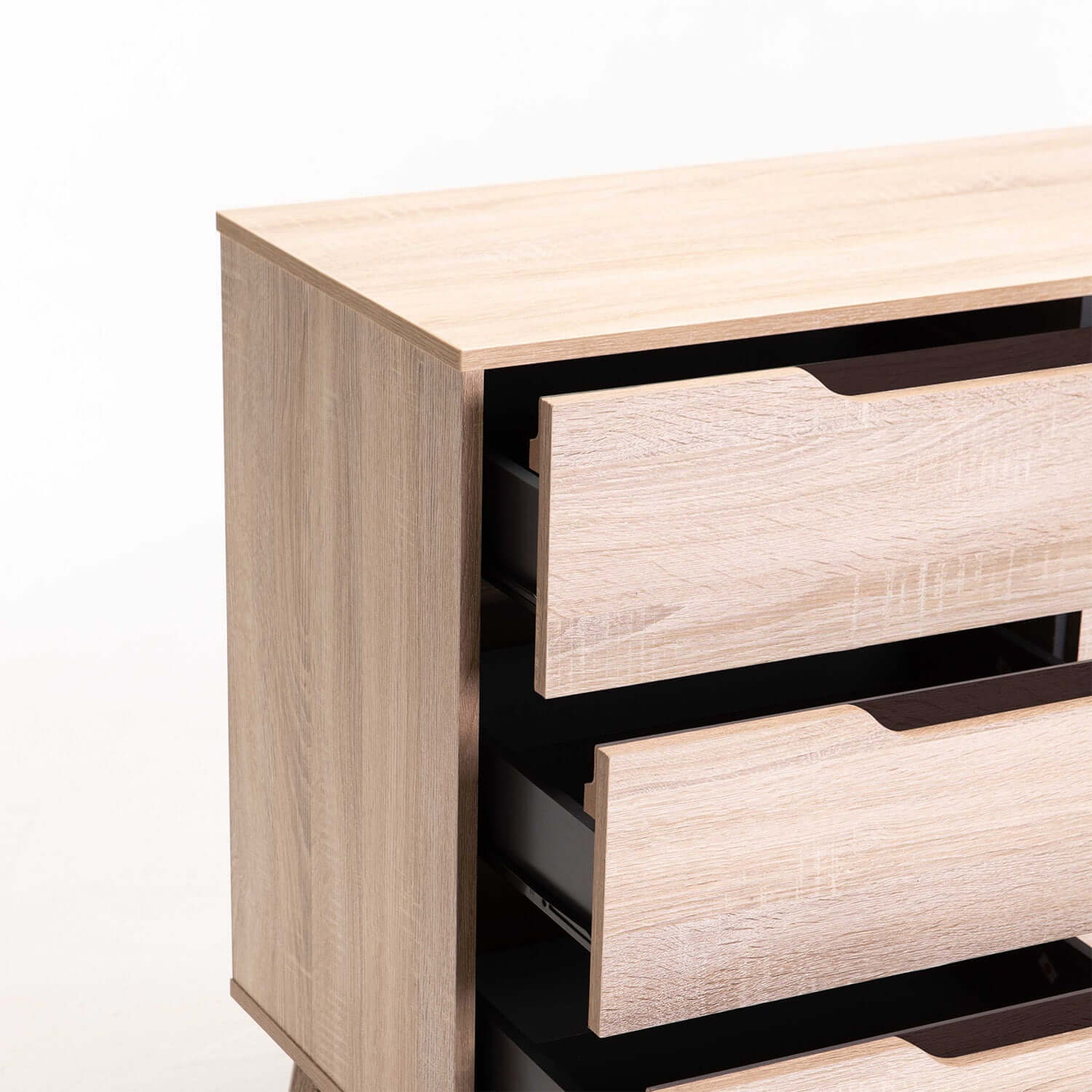 The Fin Deluxe 6 Drawer Dresser is the perfect combination of convenience and modern design. The easy-open and close drawers on metal sliders and sturdy MDF legs make for a durable, long-lasting construction. With six drawers' worth of storage, this dresser offers plenty of space to organise clothes, linens, and other household items. |