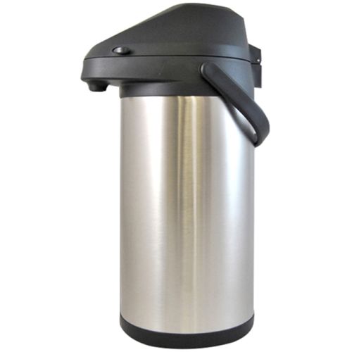 PRODUCT INFOA quality vacuum pump airpot in stylish brushed stainless steel and black. Perfect for the home, office or tea party.