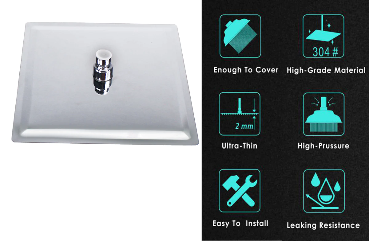 A bathroom needs a good shower, And our luxurious chrome shower head adds a touch of elegance and sprays high-pressure hot water to fill your entire body with downpour, Friends will want to stay the night just to experience the shower the following morning! Ultra-thin Design and Advanced Air Booster Technology: Double pressure boost from thickness and air-pushing offer a consistent powerful rainfall shower experience even under low water pressure. Our shower head is made of stainless steel material, which is very sturdy, and durable to use. The water nozzles adopt environmental-friendly rubber material which is safe and healthy and ensures a stable and smooth water flow. It is simple to install and easy to clean. Product details: