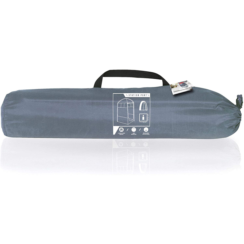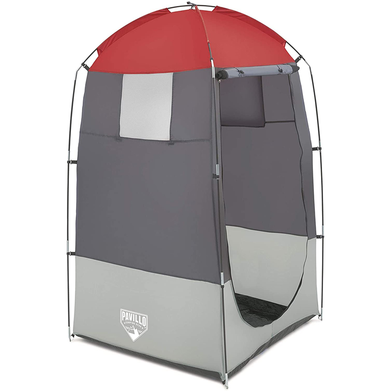 The Bestway Pavillo Station Port is ideal for use as a changing cubicle or ablution tent. Whether you want a private place to change during a trip to the beach or you need a bathroom tent for your toilet or shower on a wild camp, the Bestway Pavillo Station Port is a great solution. It’s easy to transport in its compact carry bag and the sturdy fibreglass frame is simple to assemble. Mesh screened side windows allow for plenty of ventilation and can be closed for privacy. If you are using the Station Port as a shower tent, there’s a removable floor drain too. Features